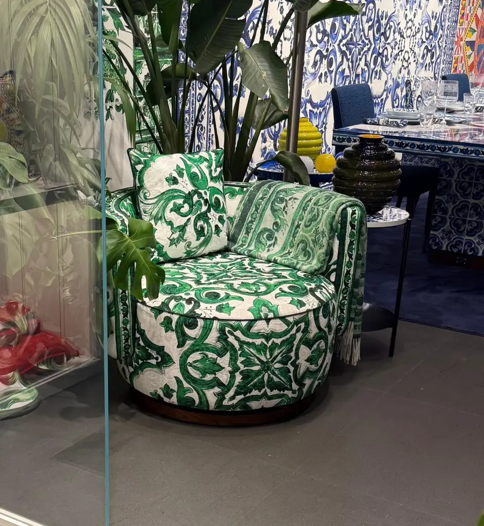 While most of the materials she encountered weren’t new, the way they were used felt fresh and inventive. Venetian plaster, metal accents, and mosaic floors were all present, but never predictable. “Metals are really having a moment, and I saw some pieces that inspired me to explore new ways of integrating them into our designs,” she says.